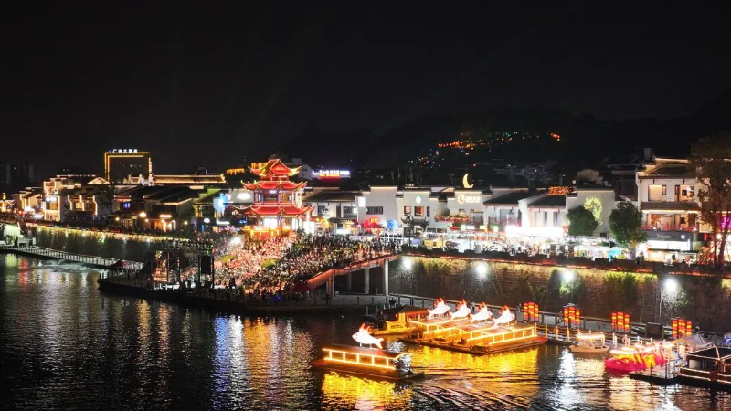 “十四五”以来,城市品牌在破圈传播中不断被擦亮——长三角绿水青山运动会新安江·龙舟赛连续4年扬帆竞渡,吸引美国、法国、英国等全球多国队伍挥桨相赴;2024元宵焰火晚会点亮夜空,约15万市民游客共聚江畔,同赏火树银花;2025百度音乐节声动全城,3.5万名乐迷现场奔赴,线上直播观看量突破4127万人次,在全网曝光量累计超40亿……